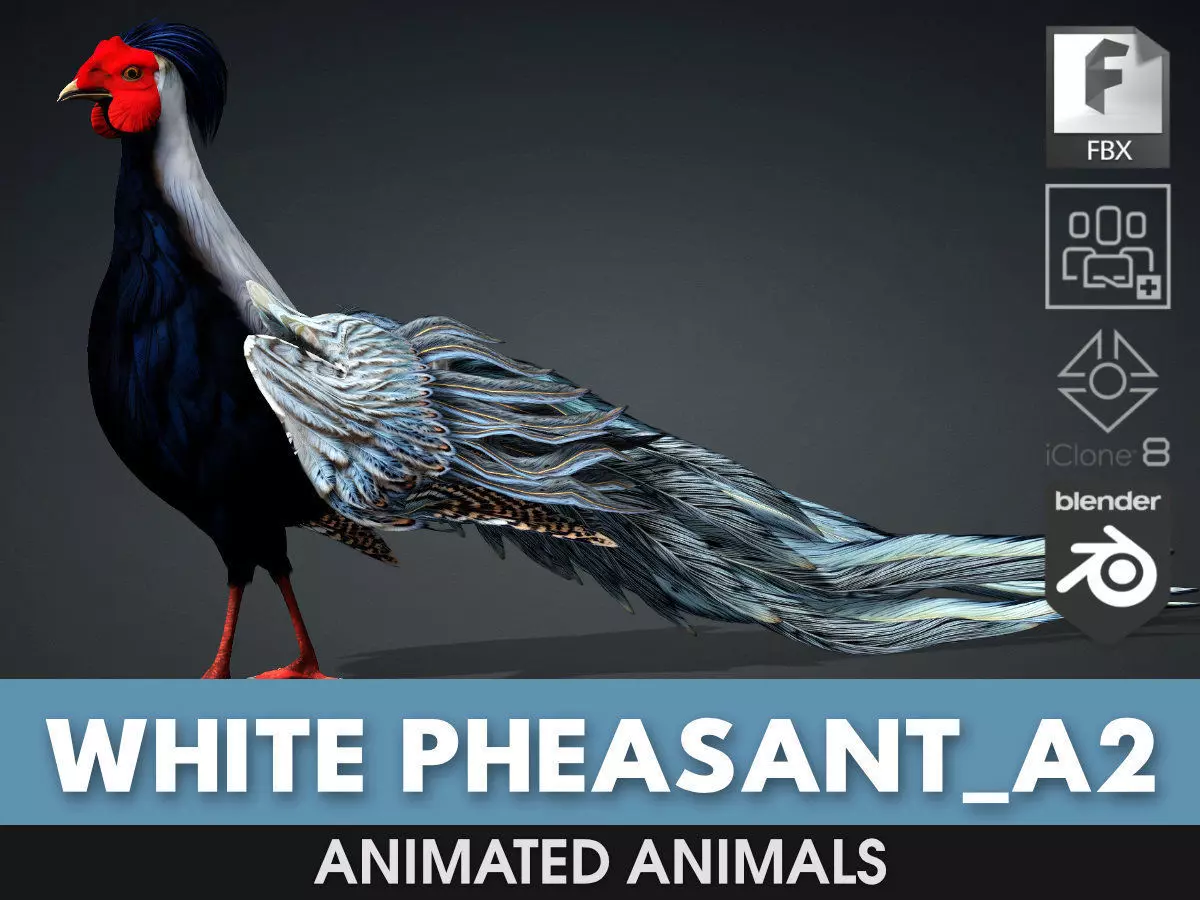 8. Customize products as required: No• White Pheasant Model Motions A1,2 Use the same video describing Typical Motions. They only differ in Color and Material.• FBX Export is specific to Blender, 3Dsmax, Maya, UE5, Unity, C4D error may occur if using other platform to import, please contact for support.• Materials are maximally simplified, usually using only 1-3 PBR materials so you can use them for most 3D Software that supports motion today.