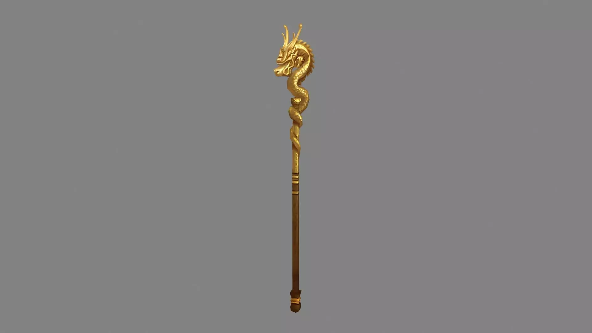 Cartoon Golden Dragon Cane Low-poly 3D model