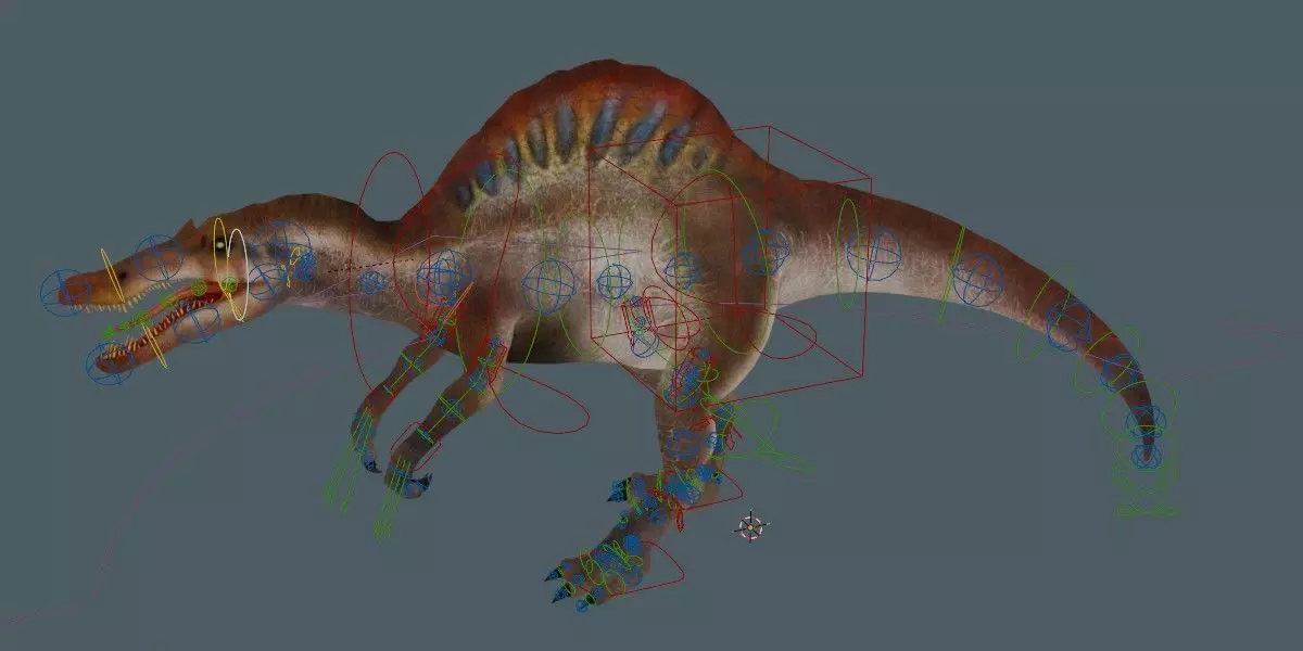 Key FeaturesFully rigged Spinosaurus 3D modelCustom rig built using RigifyRealistic Spinosaurus anatomy and proportionsClean and organized topologyQuad-dominant mesh with triangles where requiredOptimized for smooth rig deformationHigh-quality sculpted surface detailsAccurate sail, jaw, teeth, and limb structureSuitable for games, films, cinematics, and educationEasy to pose, animate, and customizeProduction-ready 3D asset3D Model SpecificationsModel Type: Rigged 3D ModelRig: Custom Rigify rigGeometry: Clean topology (quads + triangles)Scale: Real-world inspired proportionsNormals: Properly oriented and cleanUVs: Organized and usableTextures: Realistic skin detailingUse Cases: Animation, games, visualization, education