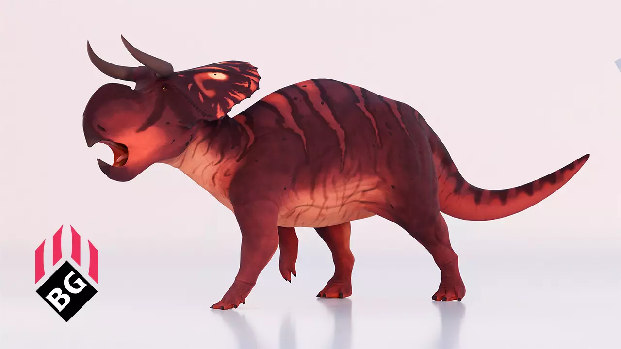 Nasutoceratops Titusi 3D model inspired in fossil records as well shown in media and games.