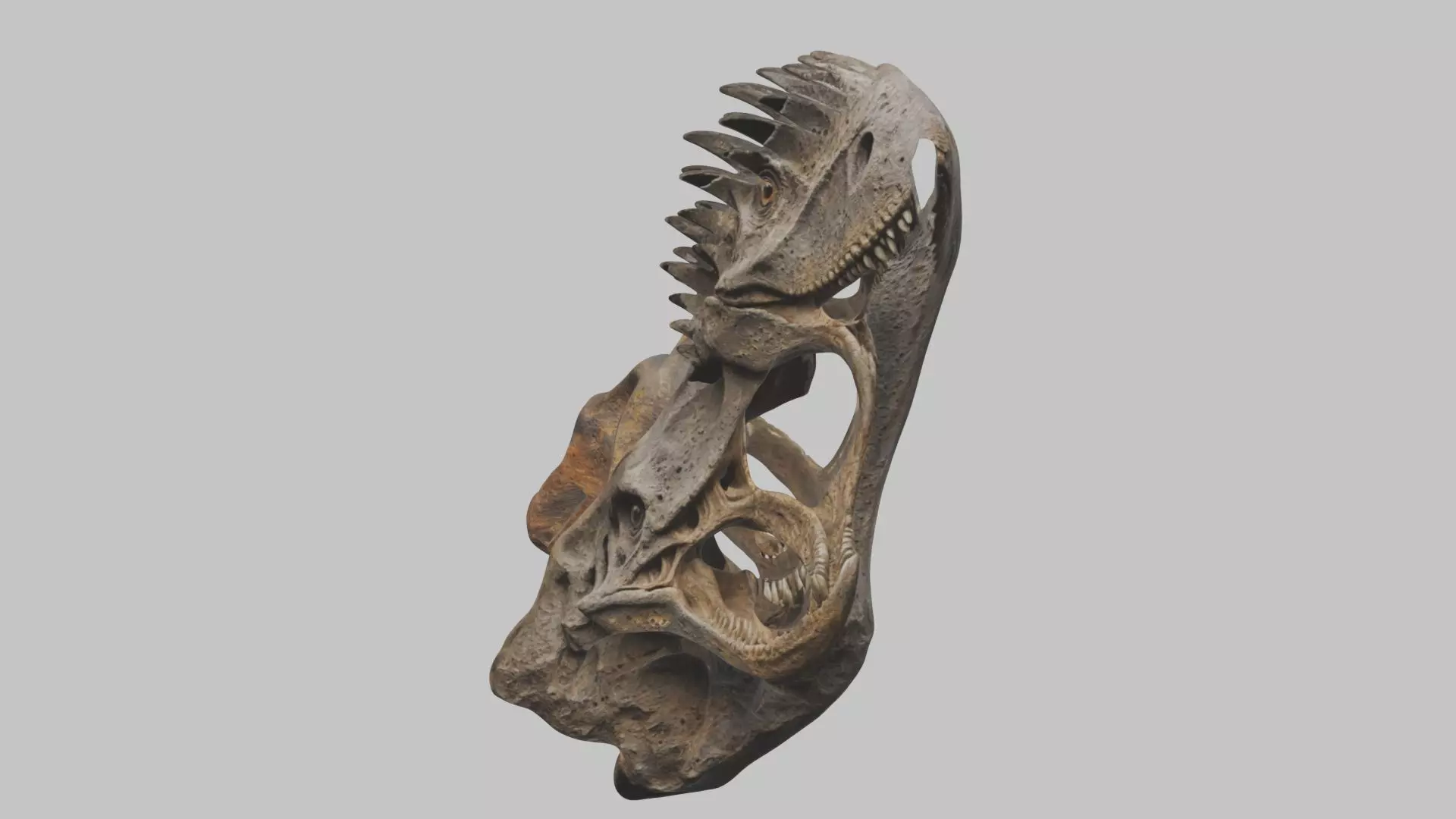 This is a detailed 3D model of an old stone Head Tyranosaurs Rex Fossil The model is ideal for adding a touch of ancient mystery to your 3D projects. It features realistic textures and intricate details, making it suitable for close-up renders and game development.