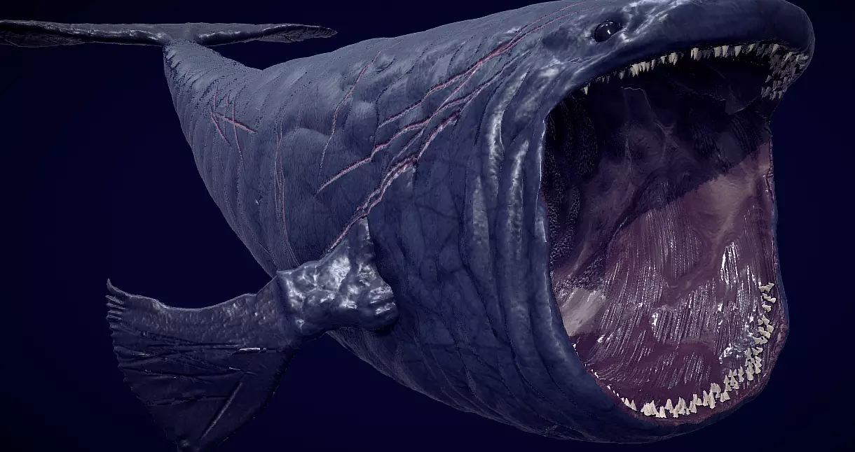 A realistic, high-detail 3D creature based on the legendary deep-sea “Bloop,” designed as a massive abyss-dwelling predator.
