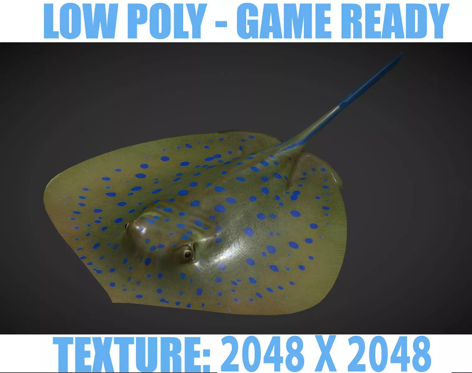 Ray fish low-poly 3d model ready for Virtual Reality (VR), Augmented Reality (AR), games and other real-time apps.