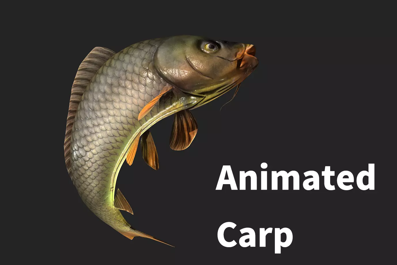 • The scene includes 1 rigged and animated low-poly carp model .