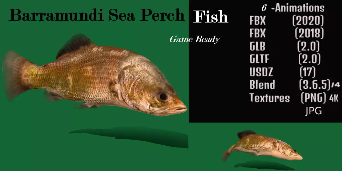 Barramundi Asian Sea Bass Fish Low-poly 3D model