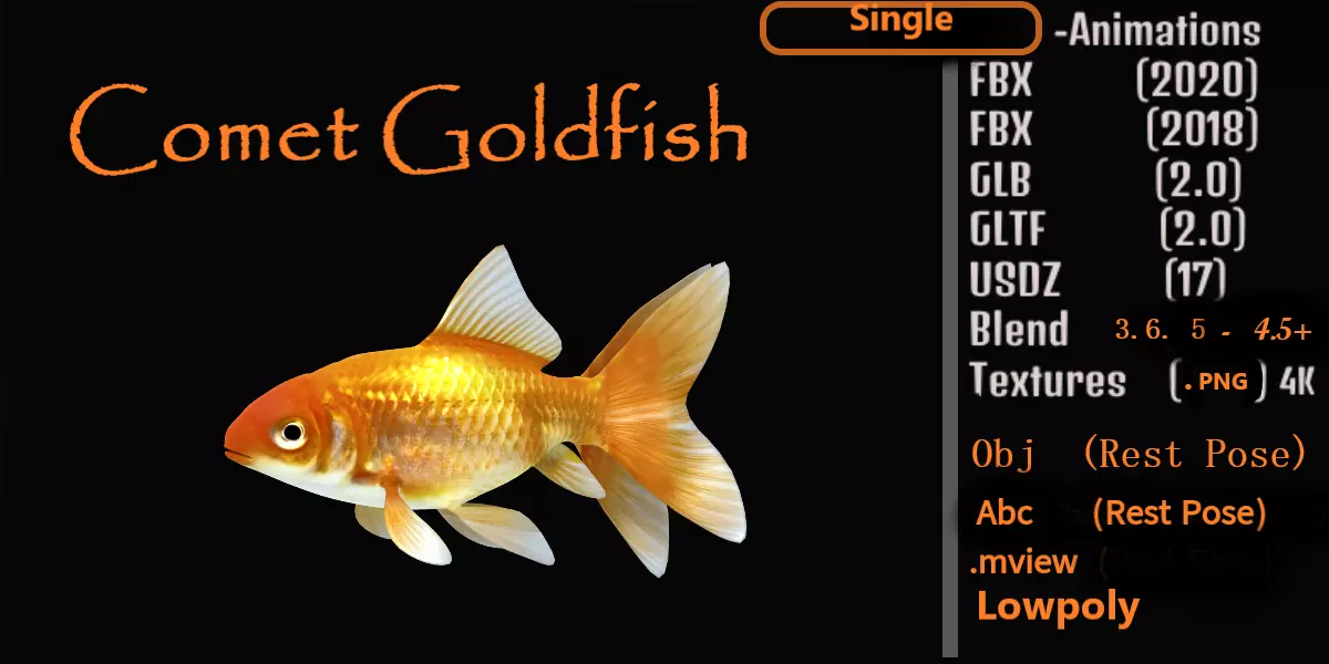The comet or comet-tailed goldfish is a single-tailed goldfish bred in the United States. It is similar to the common goldfish, except slightly smaller and slimmer, and is mainly distinguished by its long deeply forked tail. Comet goldfish tend to have a diverse variety of colors, unlike the common goldfish ..3D Comet Goldfish Model By Nyilonelycompany (nyc).
