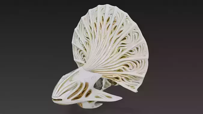 This 3D model blends the elegance of a fish-like mythical being with advanced cybernetic elements, featuring a striking white body accented with refined gold details to create a luxurious and futuristic fantasy presence.