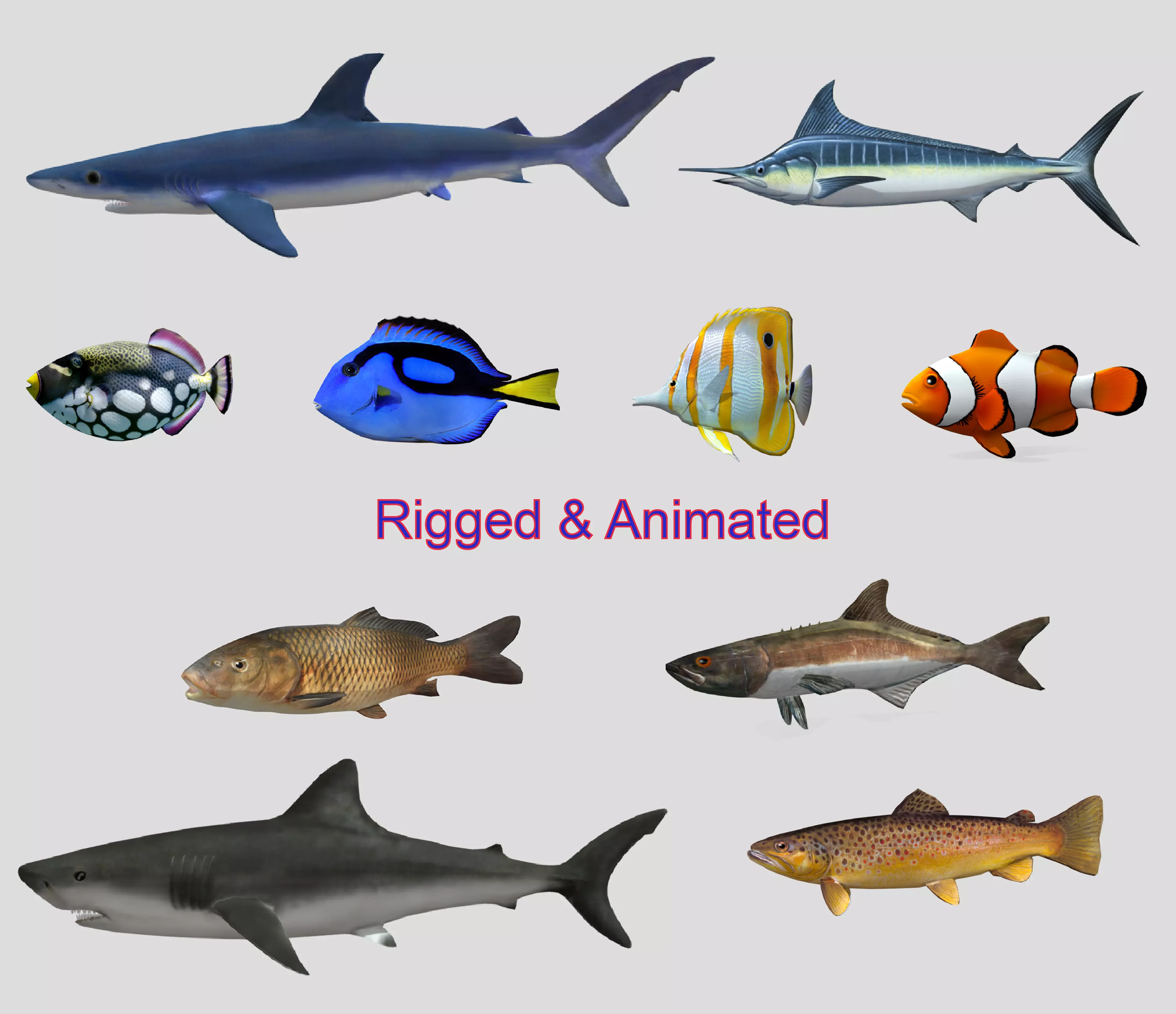 Low poly Fish Collection Animated - Game Ready Pack 1 Include 20 Fish types: