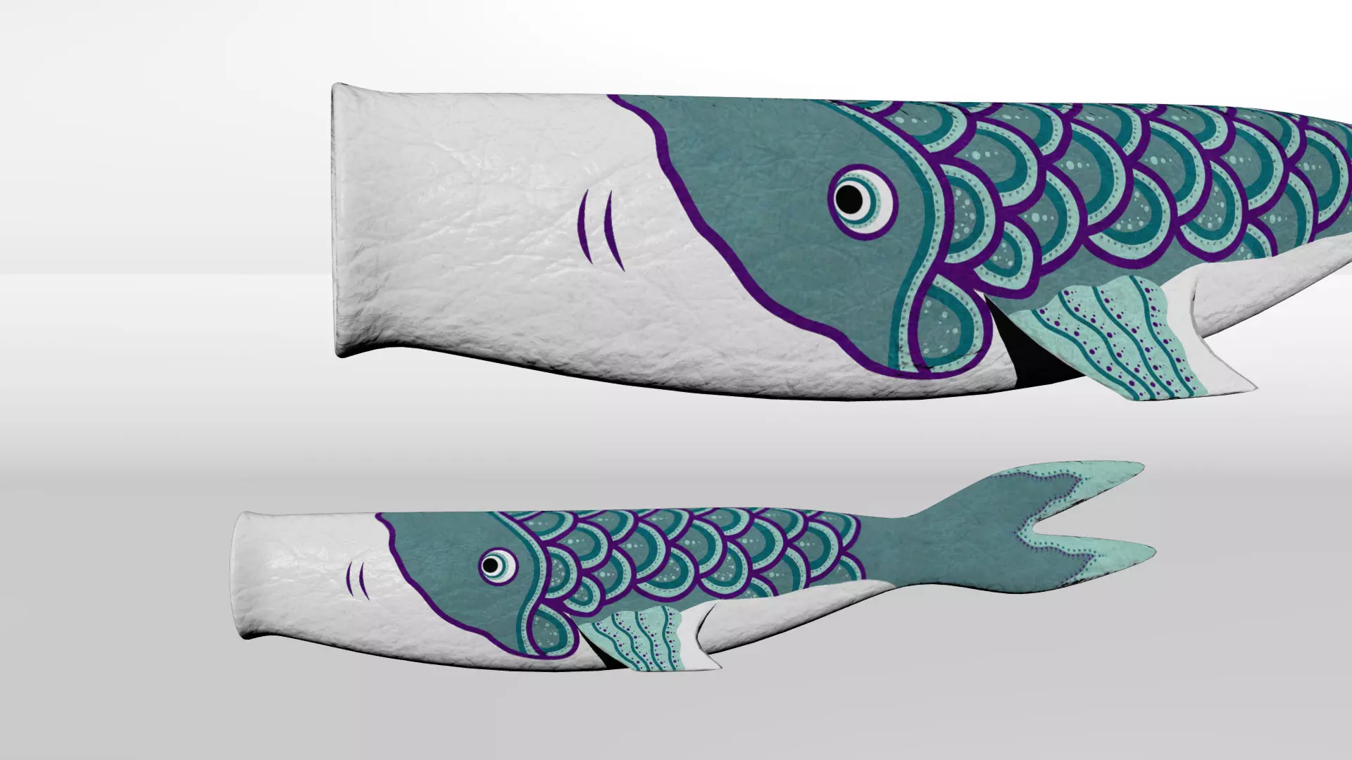A fish kite that can be used to decorate an outdoor scene. Textures included but not applied to asset. I can export further file formats upon request. (Images rendered using Mental Ray).