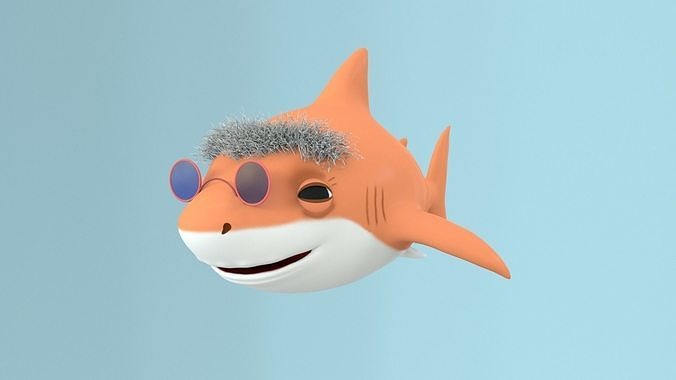 grandma shark fish cartoon Low-poly 3D model