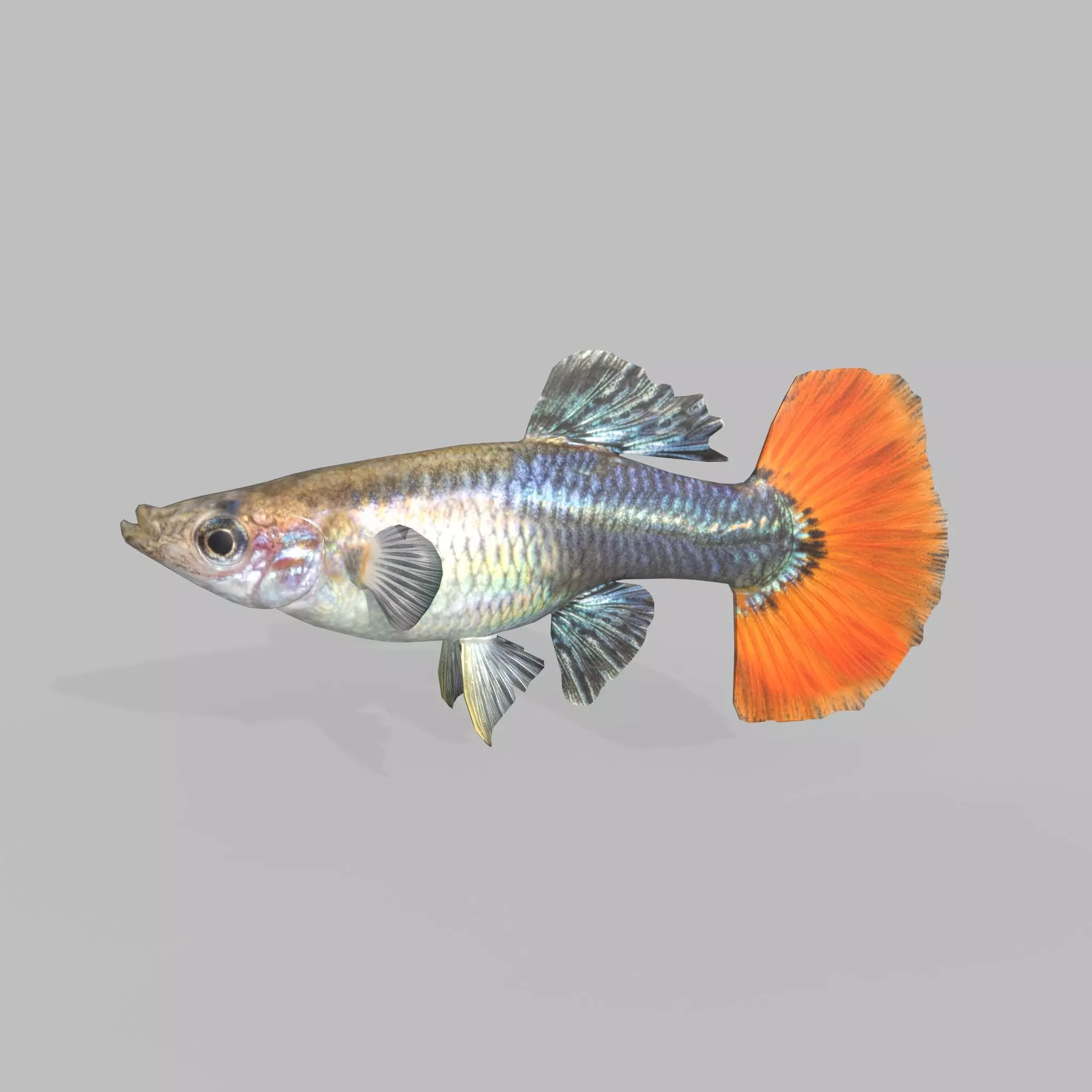 Photorealistic highly detailed 3D model of Guppy Fish. The model is perfect for creating a gaming environment or diverse aquascapes.The model is equipped with bones and includes pre-made animations. The set includes: idle animation, movement animation, fast movement animation, as well as left and right turn animations. Please note!The model rigging and animations were created in 3dsm2024. For use in other software packages, the animations were exported to FBX format and placed in a separate folder.
