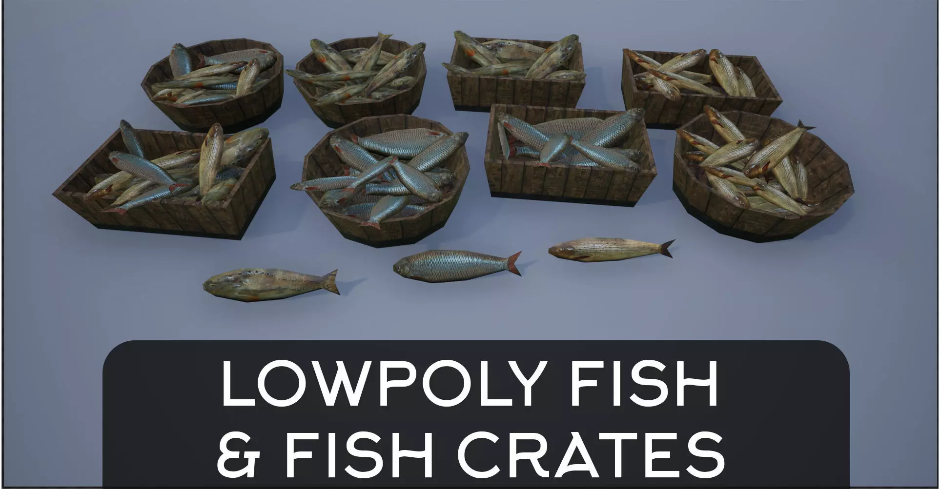 Lowpoly Fish and Fish Crates Low-poly 3D model
