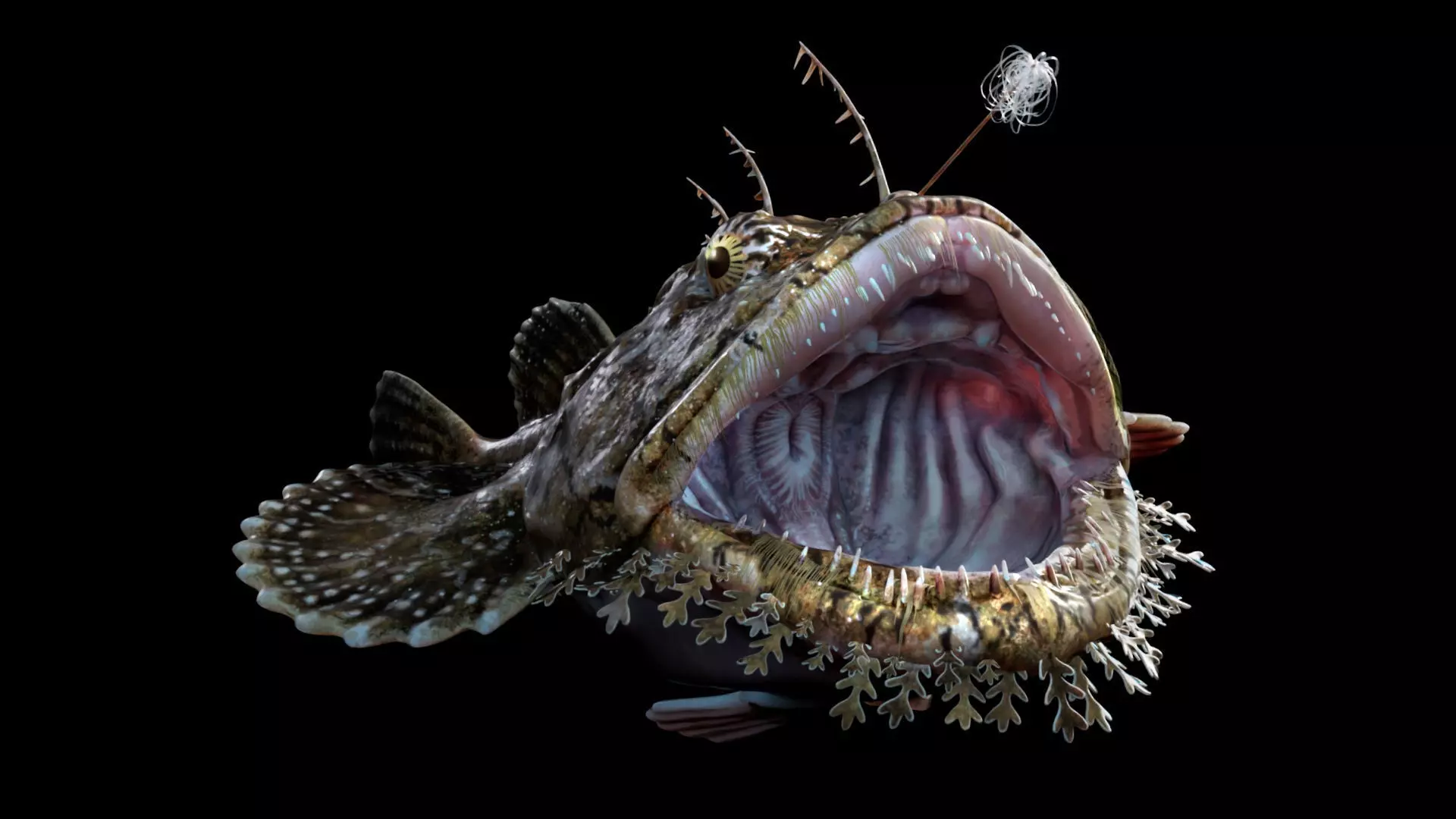 High detailed photorealistic Monkfish , completely UVmapped and smoothable, made with Maya 2024
