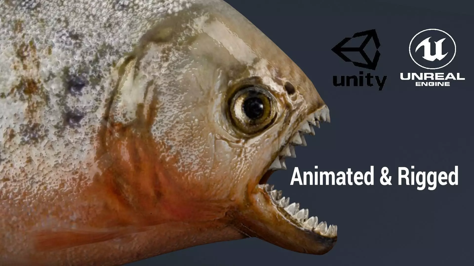 high Quality Realistic low Poly Animated & Rigged Piranha Fish2048 x 2048 TexturesDiffuse, Specular, Ambient Occlusion & Normal Map2 AnimationSwim & AttackUnreal & Unity3D supporting.blend file include game ready