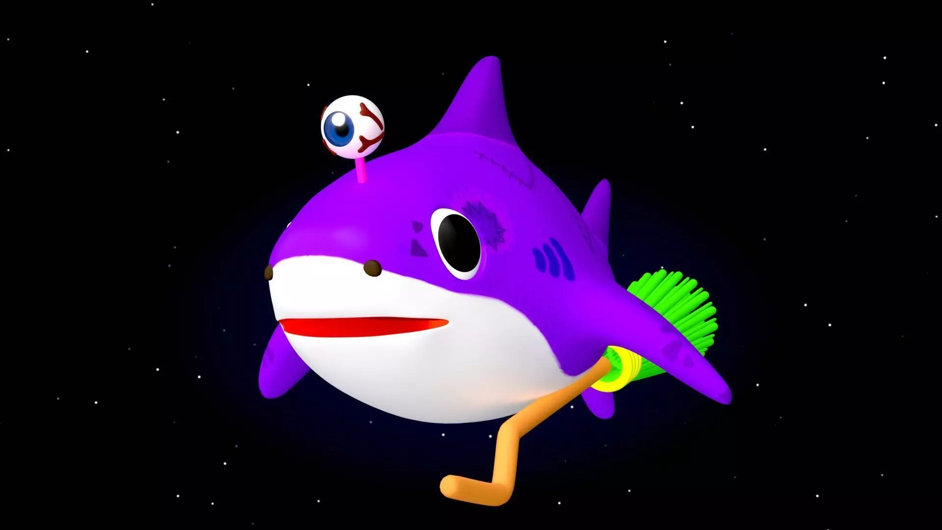 This is a high-quality, rigged 3D model of a stylized cartoon shark character. Perfect for animated series, children's content, explainer videos, or motion graphics projects.