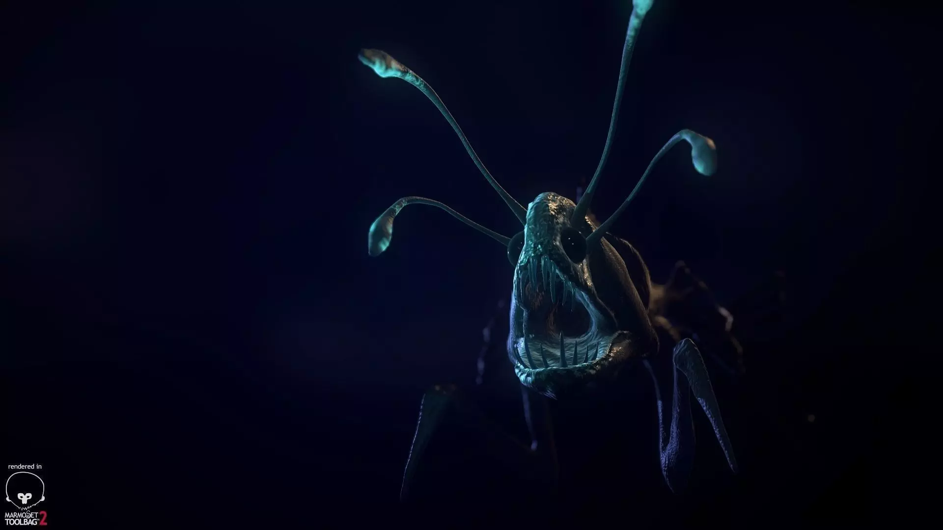 A Sea Devil inspired Creature with 4 Lights and Arms to grab.The Preview Pictures are from Marmoset, a Realtime Renderer.