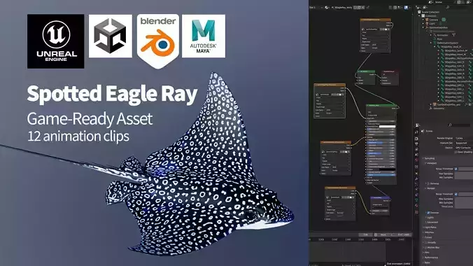 The Spotted Eagle Ray (Aetobatus narinari)12 animations: