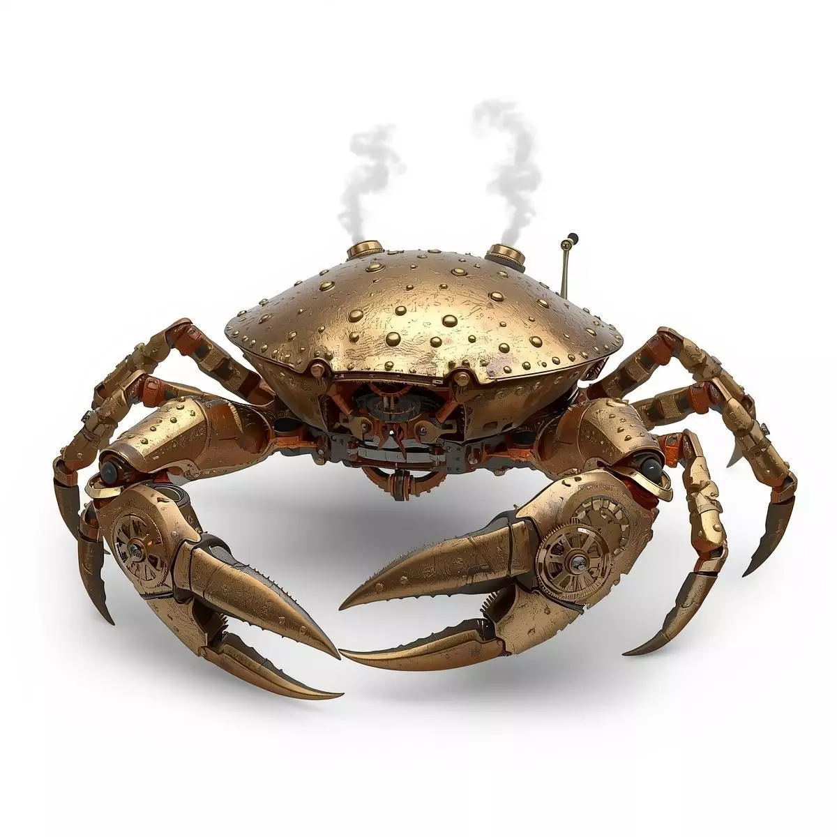 TagsCrab Steampunk Mechanical Creature Robot Industrial Brass Copper Rivets Prop GameAsset Detailed 3DModel Victorian Clockwork
