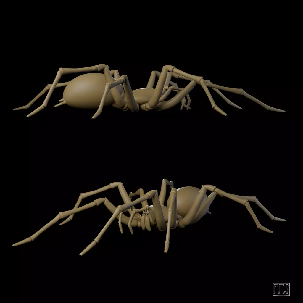 This model uses a simple parented rig, with many of the joints constrained to a single rotational axis to make posing easier. As you may wish to search for reference images to achieve a more natural pose, the model is based loosely on a European house spider
