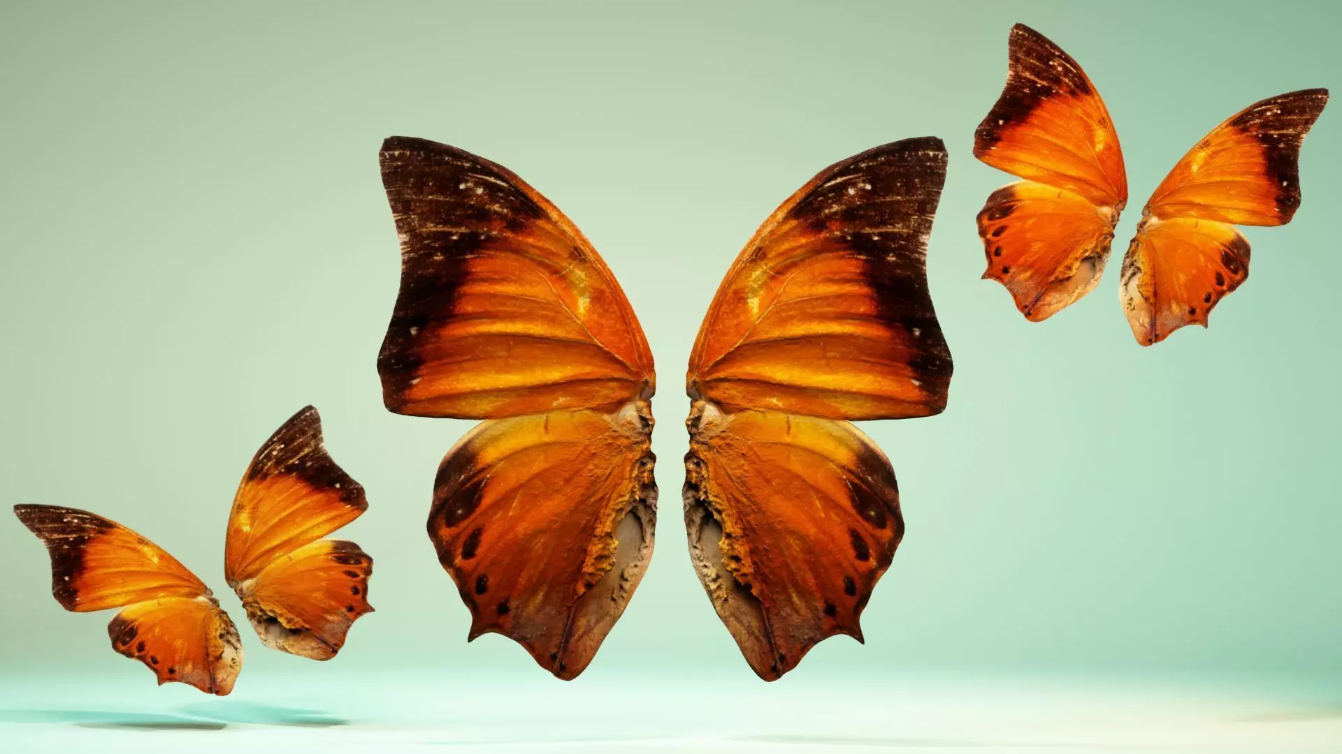 Butterfly 7 three orange butterflies flying in air Low-poly 3D model