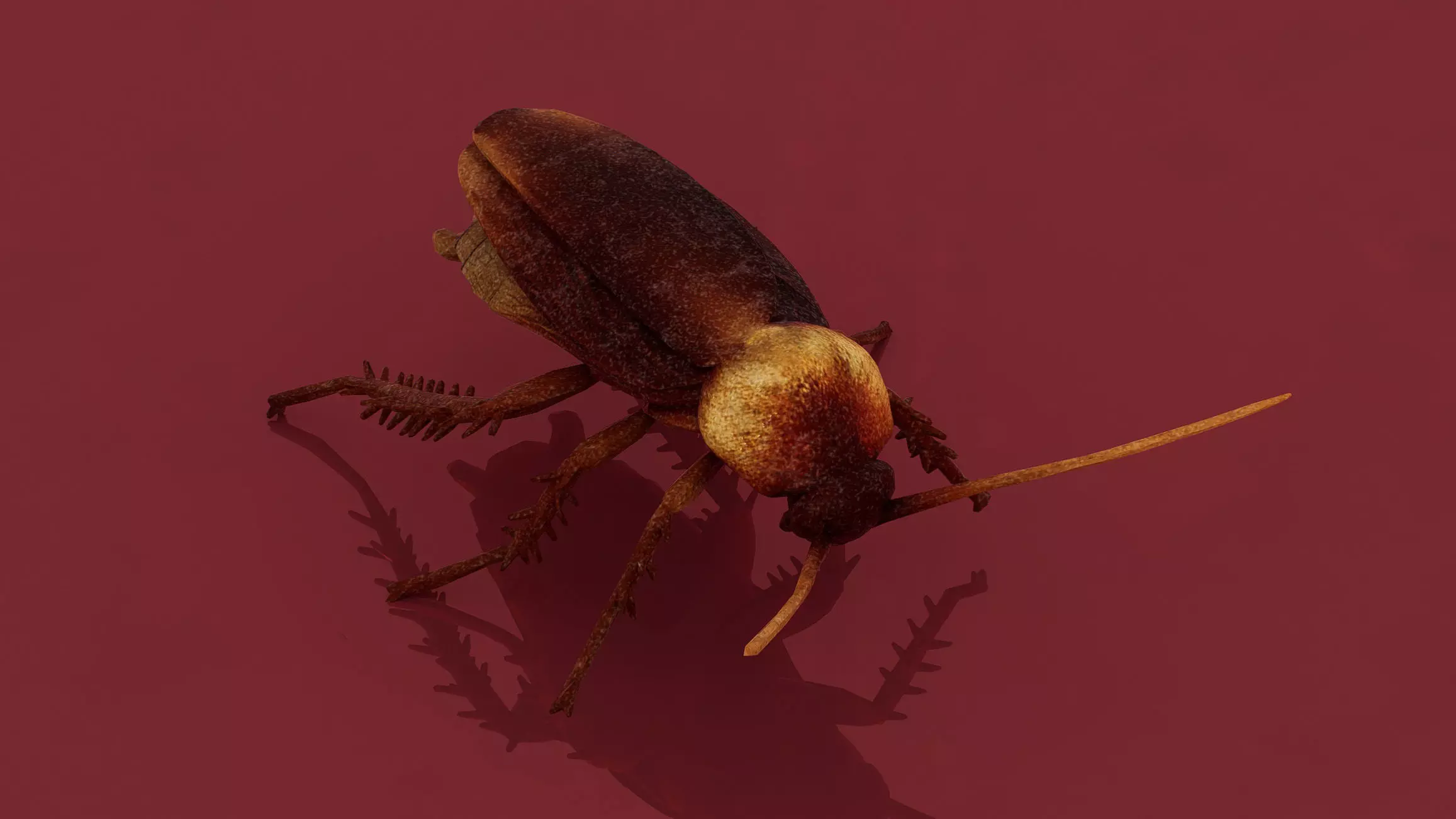 This 3D low-poly model meticulously captures the essence of a cockroach. ‌It features a segmented body with a distinct head, thorax, and abdomen, complemented by long antennae and spiny legs.‌ The shield-like pronotum adds to its realistic depiction. The model emphasizes realism, replicating the insect's exoskeleton texture and form.