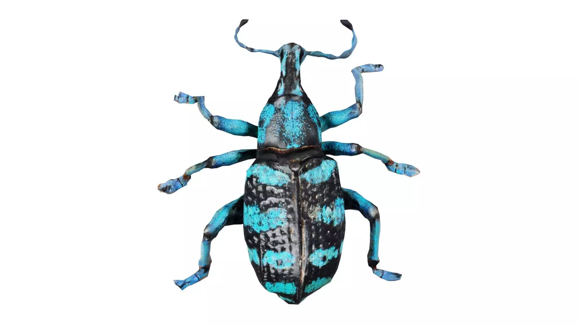 Polygonal Miniatures presents eupholus quinitaenia, a model from our 3D scanned catalogue. The model, a blue beetle with black spots on its body is obtained by photogrammetry, and scanned using SLR camera's.Processing takes place in Zbrush and Photoshop and the resulting 3D model has unwrapped, non overlapping UV's, and a texture and normal map. Before publishing, we make sure the model has real world scale (meters), correct shader setup and is centered at the origin.Apart from the various file formats, we also offer a Blender file with material and textures set-up, ready for export and rendering. More info can be found below:
