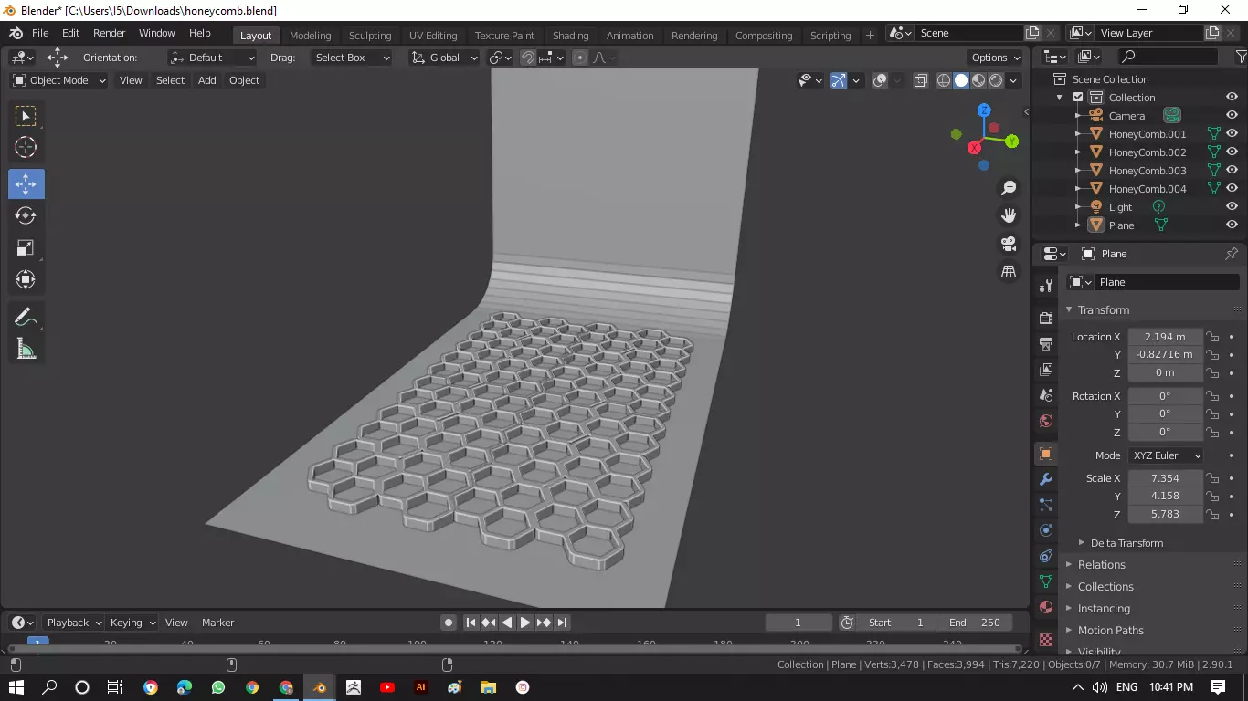 The model has material settings that define how surfaces look (color, shine, transparency, etc.).