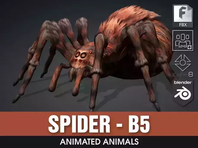 Spider Model Motions B1,2,3,4,5 Use the same video describing Typical Motions. They only differ in Color and Material.FBX Export is specific to Blender, 3Dsmax, Maya, UE5, Unity error may occur if using other platform to import, please contact for support.