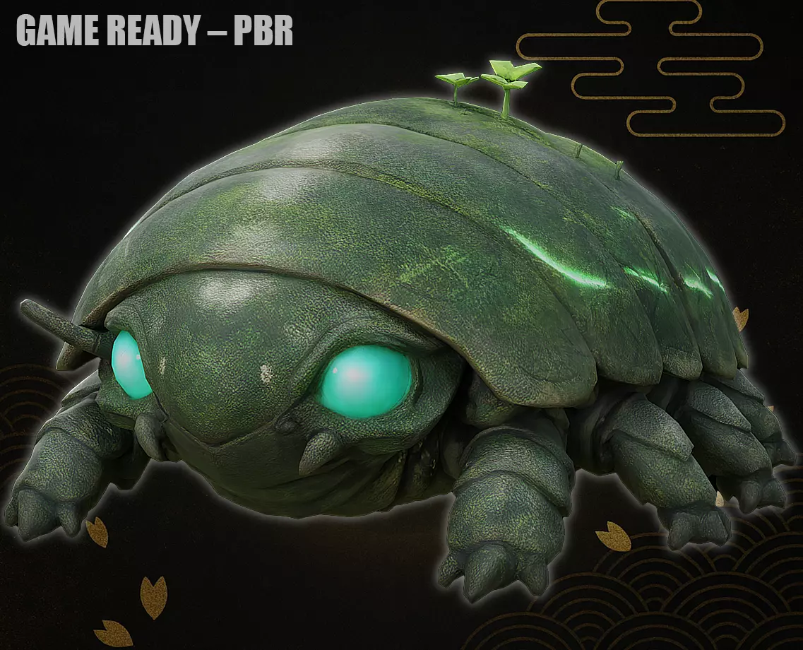 A highly detailed game-ready 3D model of a stylized beetle-like creature designed for fantasy, adventure, and creature-based game environments.