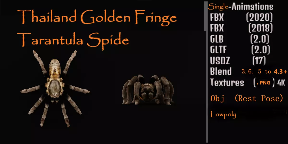 Ornithoctonus aureotibialis is a tarantula species in the Ornithoctonus genus, it was first described by Volker von Wirth and Boris F. Striffler in 2005. It is named for the Latin, aureus being golden and tibia..3D Thailand Golden Fringe Tarantula Animal Model By Nyilonelycompany(nyc).