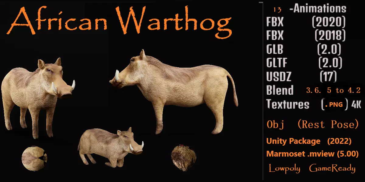 • African Warthog (Common Warthog)Herbivorous