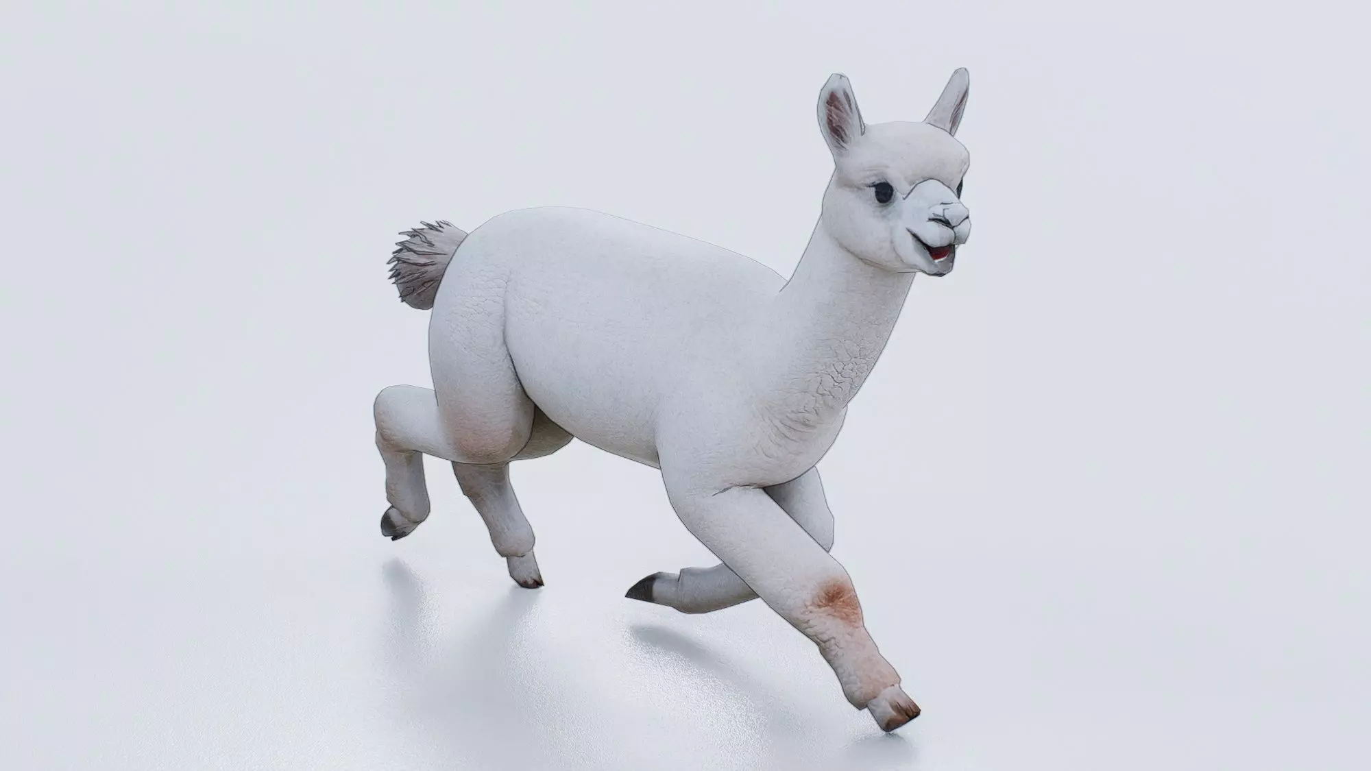 This 3D low-poly model features an alpaca, a domesticated camelid native to the Andes mountains of South America. Known for its soft, dense fleece and gentle demeanor, the alpaca is depicted here in mid-stride, capturing its graceful movement and characteristic long neck, perked ears, and compact body. The model emphasizes anatomical accuracy while maintaining a simplified polygon count ideal for real-time rendering in games, simulations, or virtual environments. With realistic texturing and subtle shading, it conveys the animal’s fluffy coat and expressive face, making it suitable for both educational and entertainment applications.
