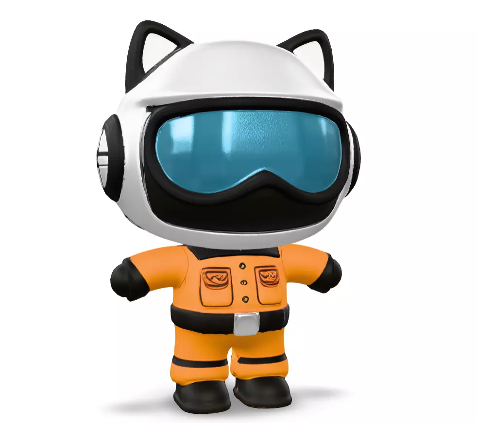 Presenting an exclusive 3D model of an adorable astronaut cat, ready to explore the universe! This highly detailed model features a charming cat dressed in a bright orange spacesuit, complete with a white helmet and black shoes, all in a perfect T-pose for animation and 3D projects. The design of the astronaut cat is meticulously crafted, from the well-modeled spacesuit to the cute expressions on the character's face.