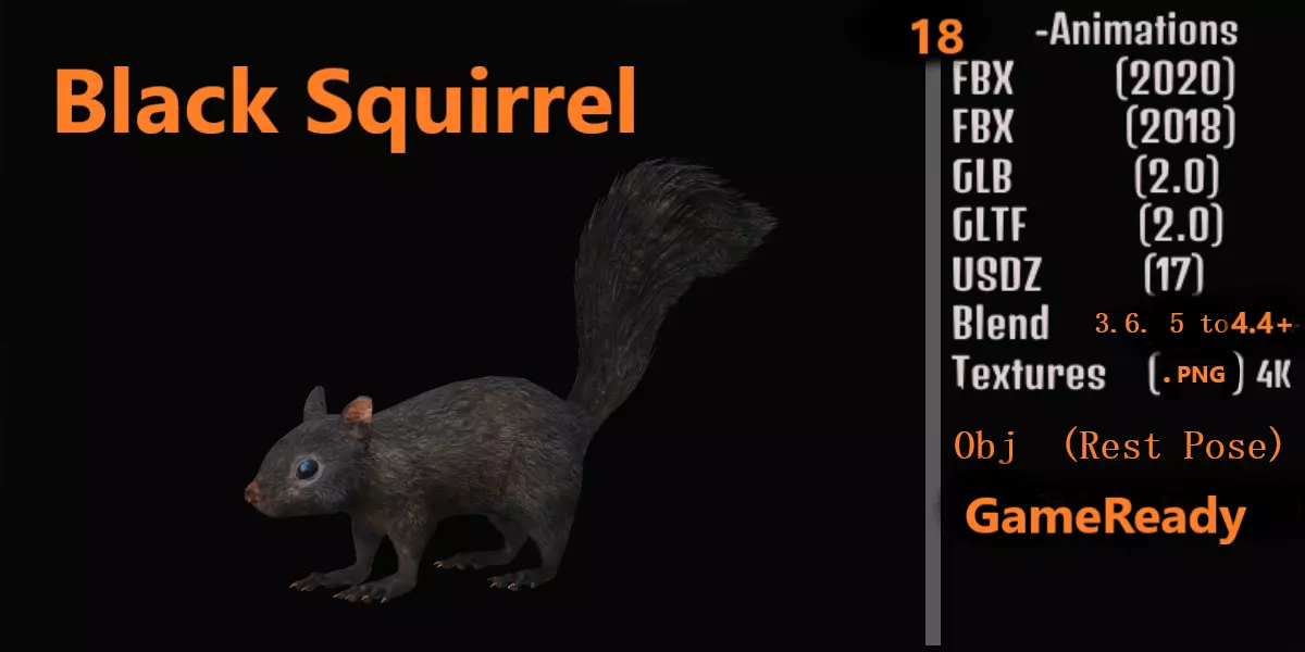Black squirrels are not a separate species, but rather a melanistic variation of the eastern gray squirrel. They have a black coat due to a genetic quirk that causes an abundance of melanin, the pigment that gives hair its color. This mutation can occur in several squirrel species, but it's most common in eastern gray and fox squirrels. Black squirrels are a melanistic subgroup of squirrels with black coloration on their fur. The phenomenon occurs with several species of squirrels...3D Black squirrels Model By Nyilonelycompany (nyc).