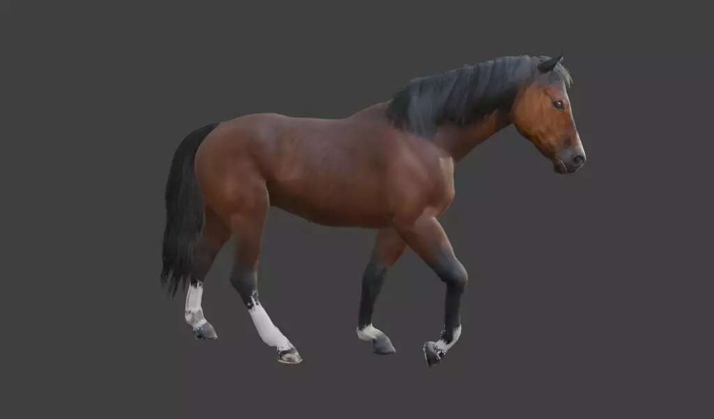High Poly Geometry : Detailed and clean topology that captures the muscular structure and natural curves of a real horse — perfect for cinematic rendering and up-close shots.