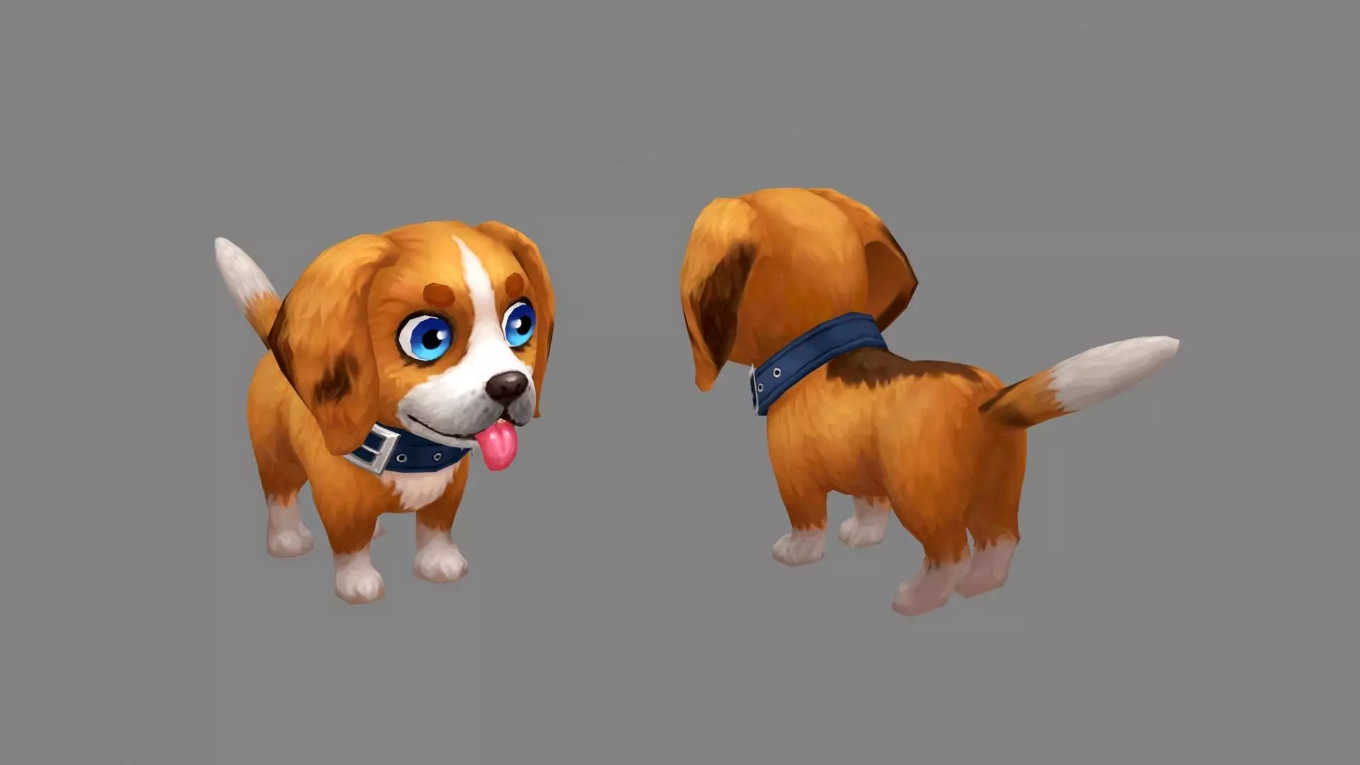 Cartoon beagle puppy - yellow dog Low-poly 3D model
