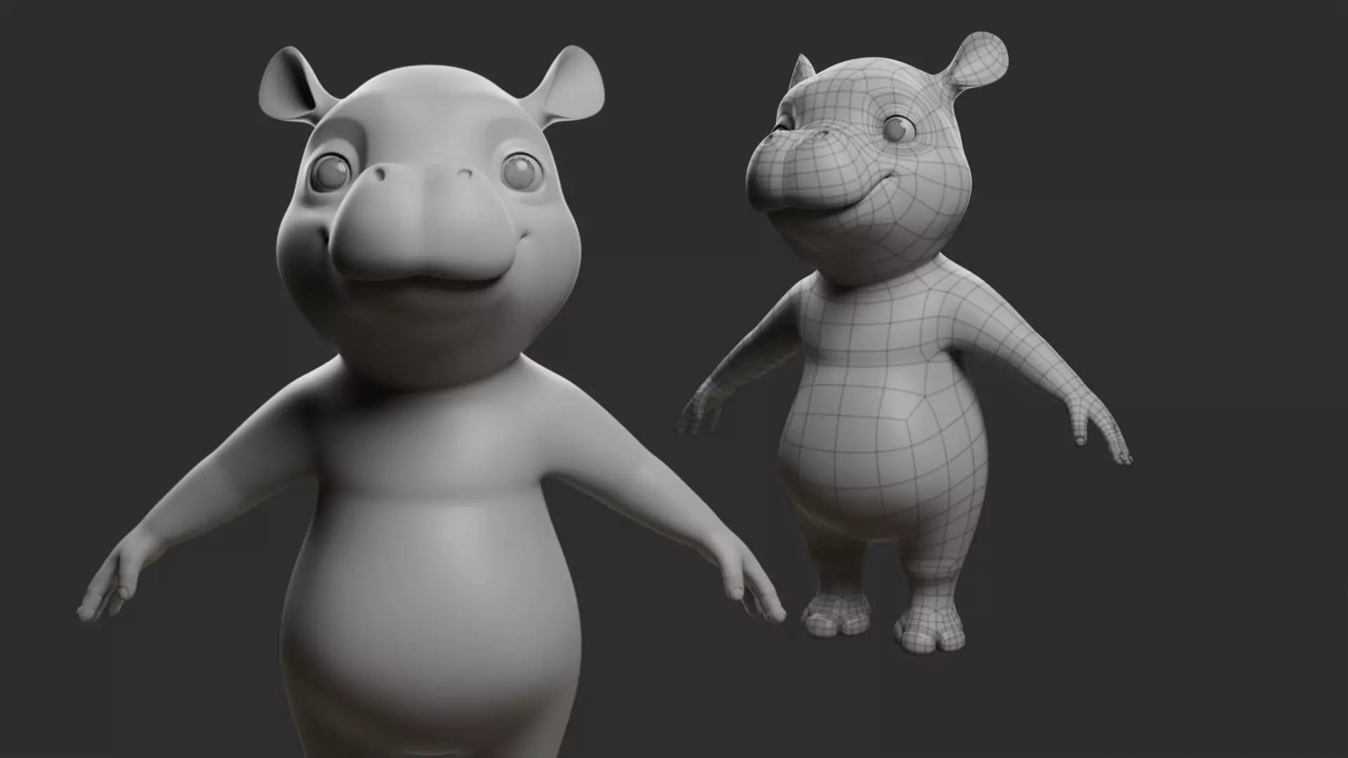 Cartoon Hippo Basemesh