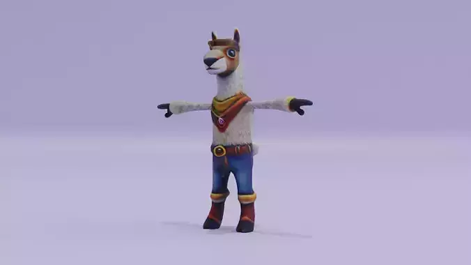 Cartoon llama Cowboy costume Character T-Pose Low-poly 3D model