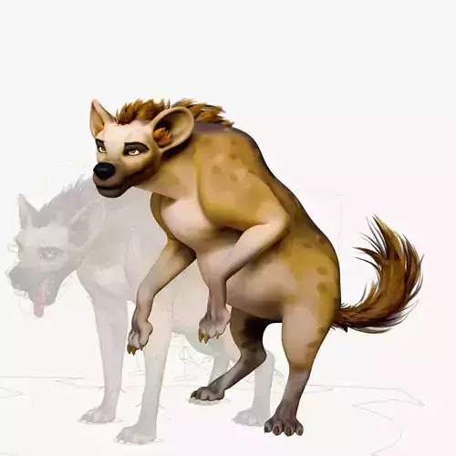 This is a high-quality, fully rigged 3D character featuring a Spotted Hyena. The model utilizes a hybrid Cartoon-Realistic aesthetic, blending stylized proportions with realistic detailing.