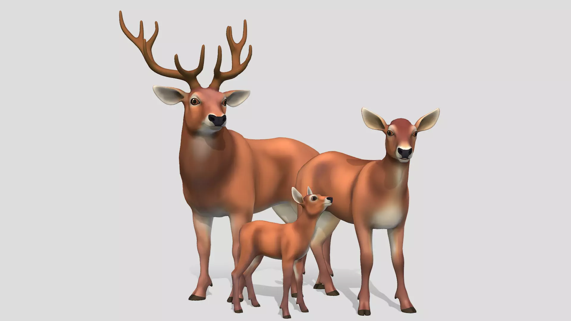 This asset has CARTOON RED DEER FAMILY models - Calf, Doe and Stag.