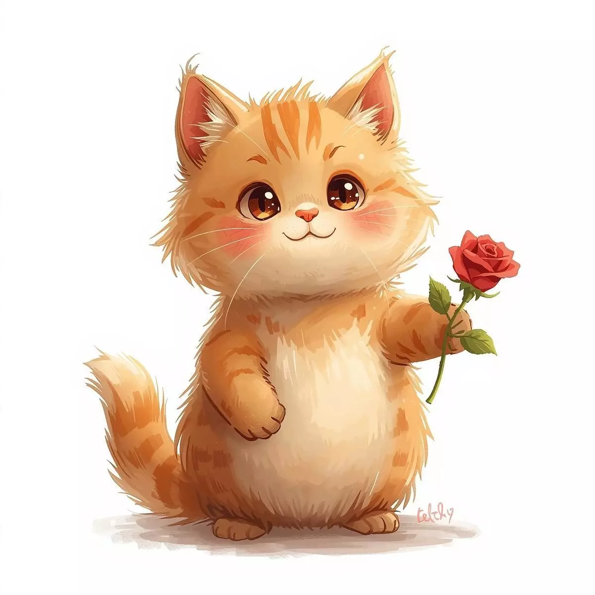 Tags3d model charming cat kawaii style valentine's day theme red rose standing pose orange tabby cute character game ready asset high detail green eyes holiday prop isolated character pbr materials digital collectible