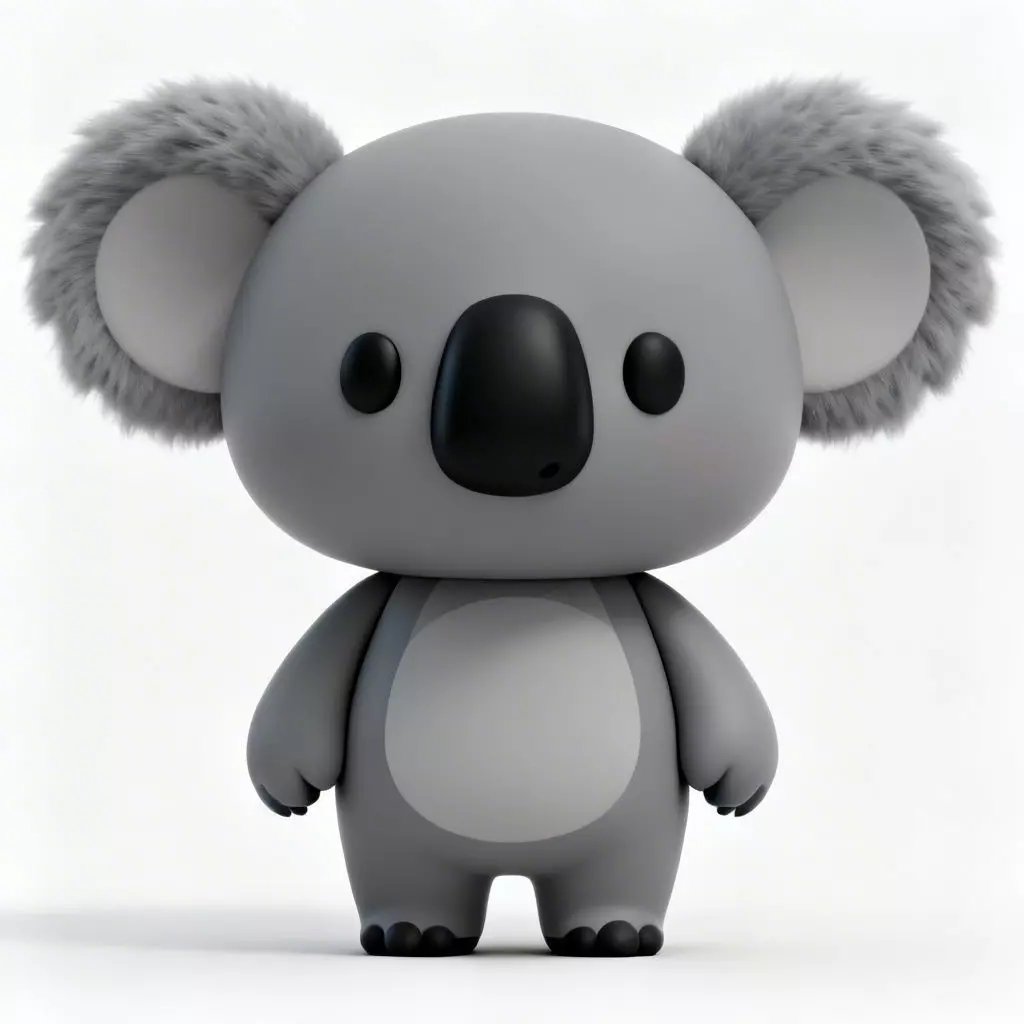 Solid Glossy Facial FeaturesFollowing a specialized design language, the koala's eyes and large, prominent nose are modeled as solid, black glossy surfaces. This approach strictly avoids any transparent glass or crystal materials, ensuring the asset is highly optimized for performance while reinforcing its consistent, toy-like character.