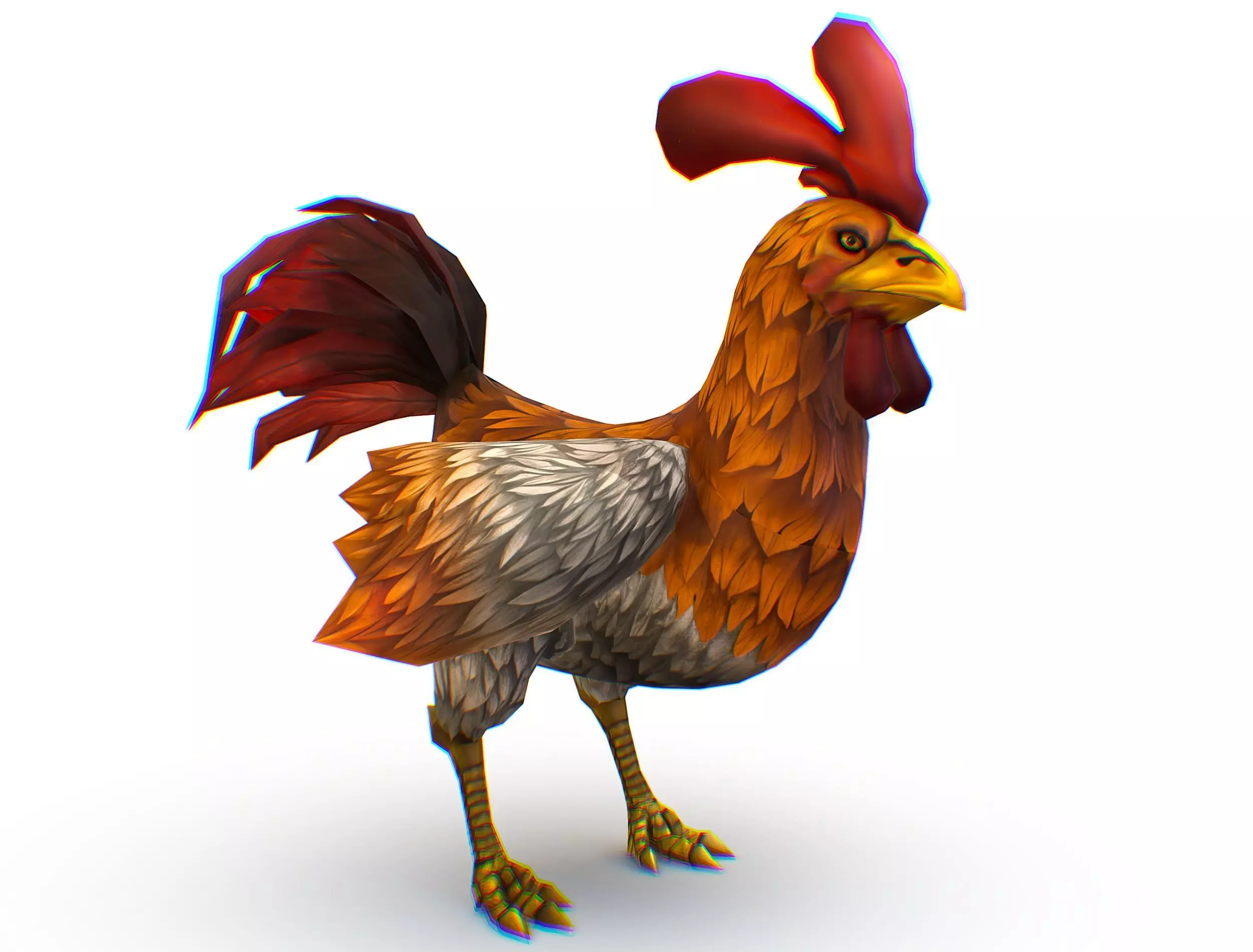 Colorful Rooster With Red Tail Detailed Feathers Low-poly 3D model