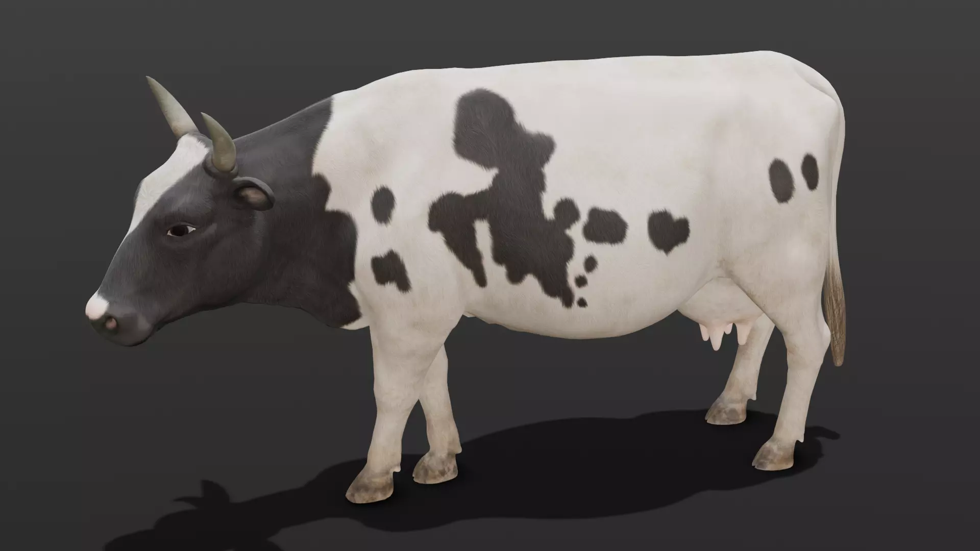 Polygons:The model is comprised of 15,565 polygons, offering a high level of detail that captures the nuances of the cow’s form and movement without compromising on performance.