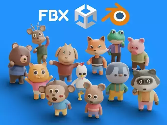 This pack includes 24 models of 12 stylized animal characters created for games, animation, and AR/VR applications. Each character is modeled in Blender with clean, animation-ready topology and proper edge loops.