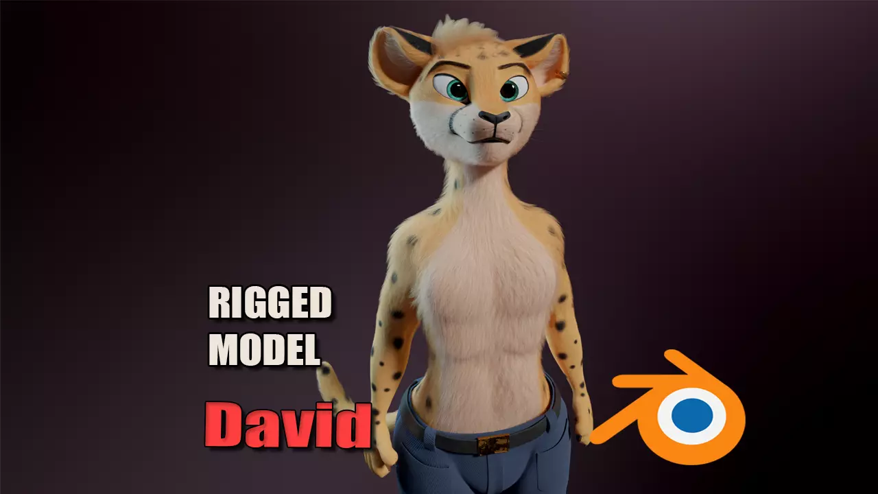 3D model of an anthro cheetah made in Blender (.Blend) that I named David. Rig , Hair and Fur only in blender, other formats only model mesh