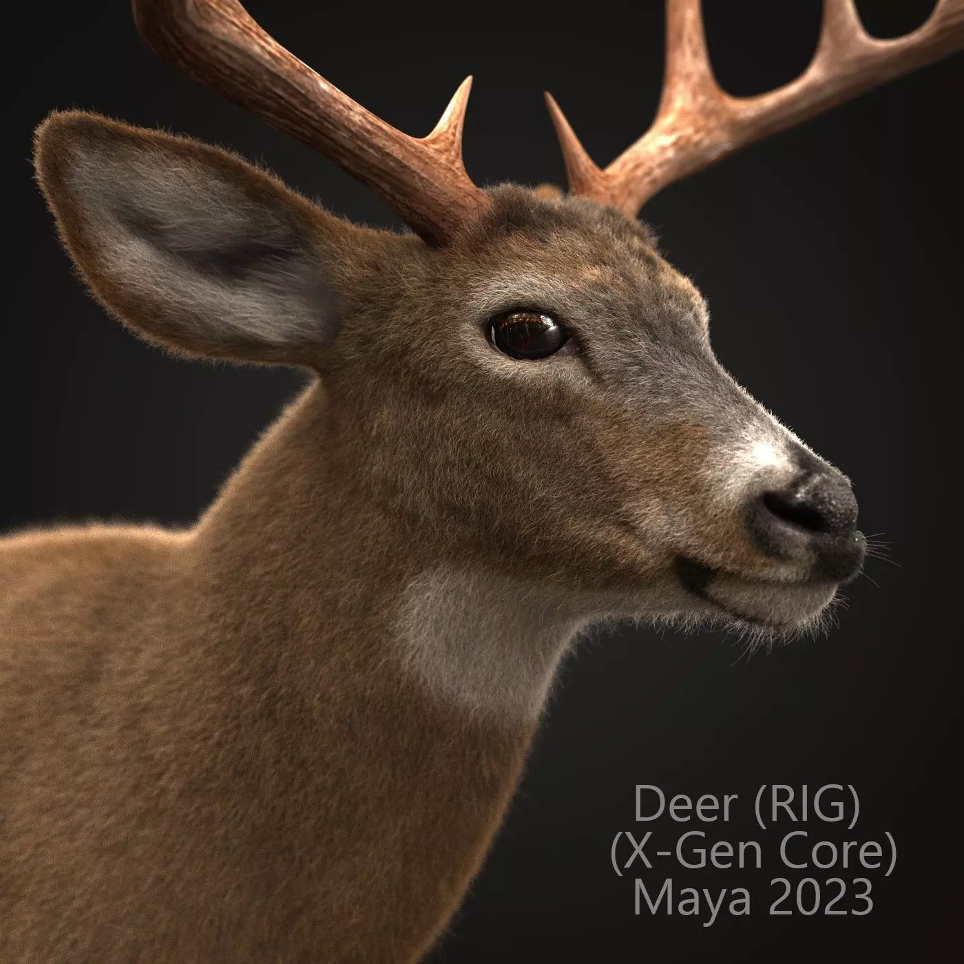 High Detailed Photorealistic Deer; FULLY RIGGED, UVunwrapped and smoothable, made with Maya and X-Gen Core for fur.