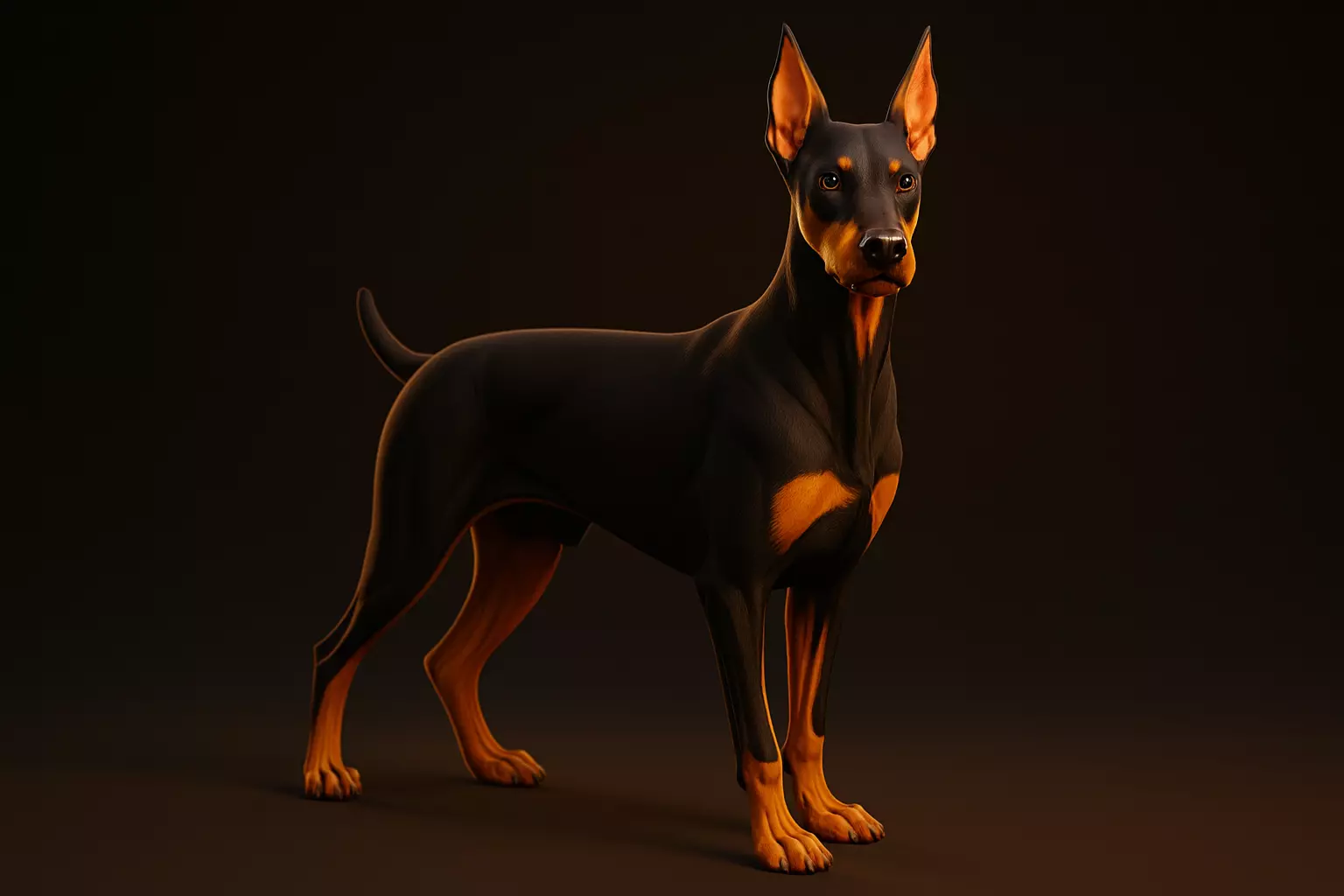 This realistic 3D Doberman Pinscher is crafted with clean topology and optimized details, perfect for use in games, animations, AR/VR projects, or visualizations. The model captures the strong and elegant build of the Doberman with precise proportions, smooth surfaces, and hand-painted textures that highlight its signature black and tan coat.
