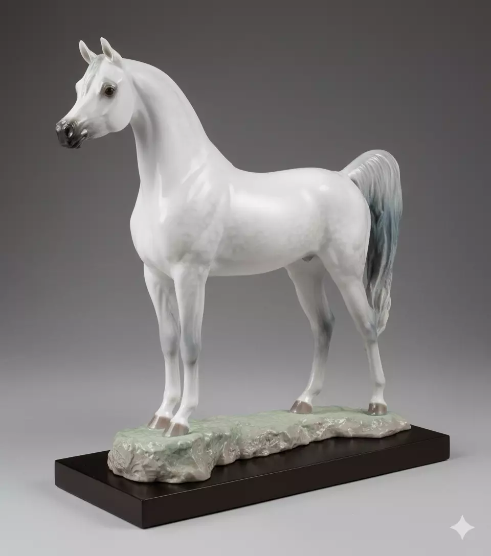 Tags#PorcelainHorse #ArabianStallion #RealisticSculpture #ArtDecoDecor #EquineAnatomy #3DPrintingArt
