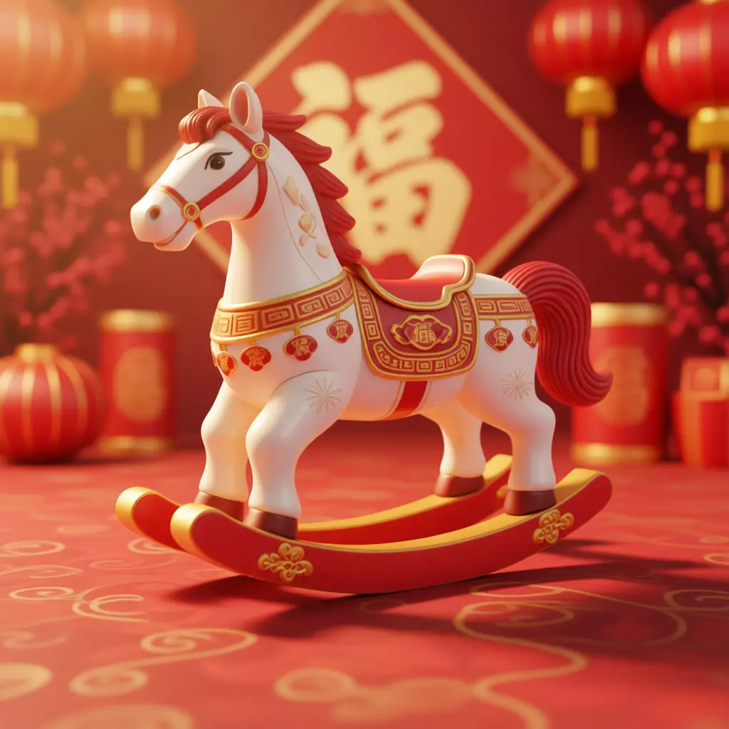 The model embodies the core themes of the Chinese New Year: luck, prosperity, family, and celebration. By using this 3D asset, you can instantly infuse your projects with a sense of warmth and festivity. Whether you are designing a digital campaign for a global corporation or creating a personal holiday greeting, this rocking horse provides a timeless and beloved centerpiece.